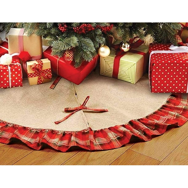 Amazon Com Falda De Arbol De Navidad De Copos De Nieve Blancos Grande De 48 Pulgadas De Diametro Centro De Fieltro Rojo Ribete De Piel Sintetica Blanca Regalos Regalos Decoracion De Navidad Rojo